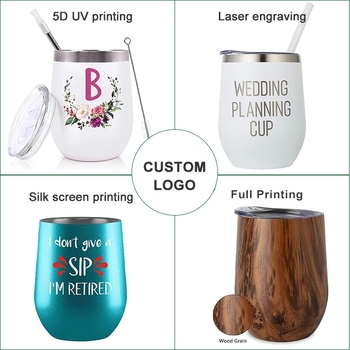 Vente chaude 10oz 6 oz verres isolés sous vide à double paroi en acier inoxydable gobelet à vin avec couvercle