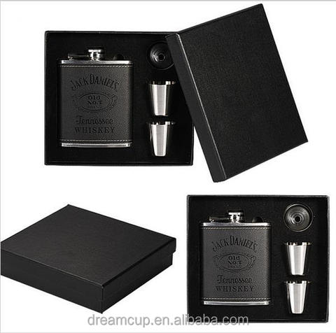 6oz noir mat gravure personnalisée flacon de hanche en acier inoxydable coffret cadeau avec 2pcs verre à liqueur