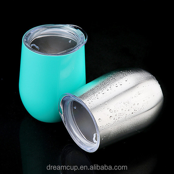 אבקה מצופה צבע קיר כפול קיר ביצה נירוסטה צורה יין טאמבלרים 12 עוז unbrakable עם כפיות שקופיות