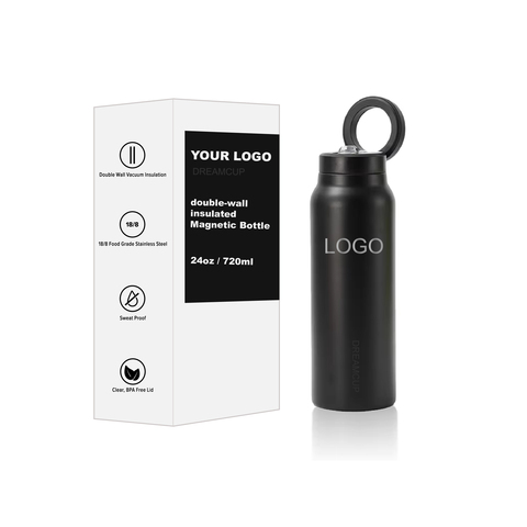 Оптовая продажа, вакуумные колбы с двойными стенками и логотипом на заказ, 720 мл, изолированная нержавеющая сталь, Спортивная Магнитная бутылка для воды с держателем для телефона